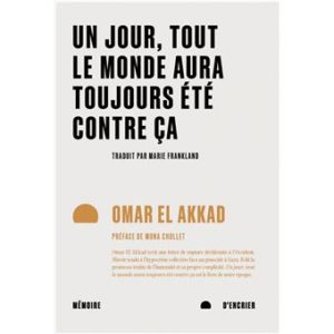 Miroir tendu à l’hypocrisie collective, à sa propre complicité passive et à la promesse trahie de l’humanité, Omar El Akkad signe avec Un jour, tout le monde aura toujours été contre ça le livre de notre époque. « C’est une consolation de découvrir que quelqu’un est capable d’appliquer à ces événements autant d’intelligence et de sensibilité, de les analyser avec autant d’acuité, et avec ce qui ressemble bien à de l’amour » Mona Chollet.